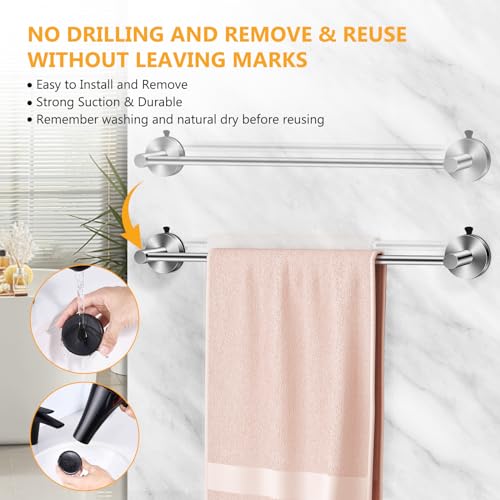 ANMEISH - حامل مناشف بقاعدة شفط 60 سم للحمام، حامل مناشف شاي ستانلس ستيل SUS304 يثبت على الحائط، قضيب منشفة يد مفرغ من الهواء، رف منشفة بدون ثقب للحمام والمطبخ (فضي)