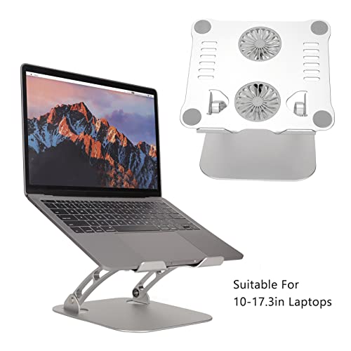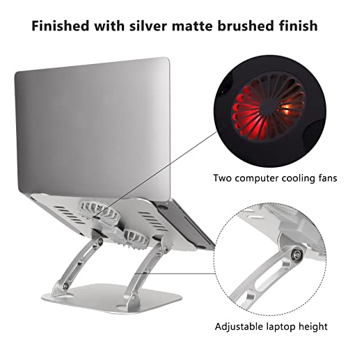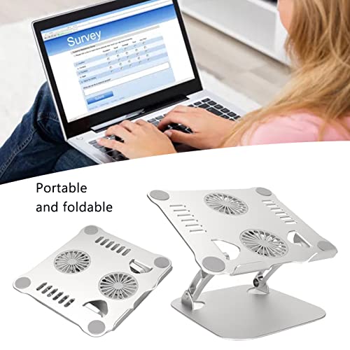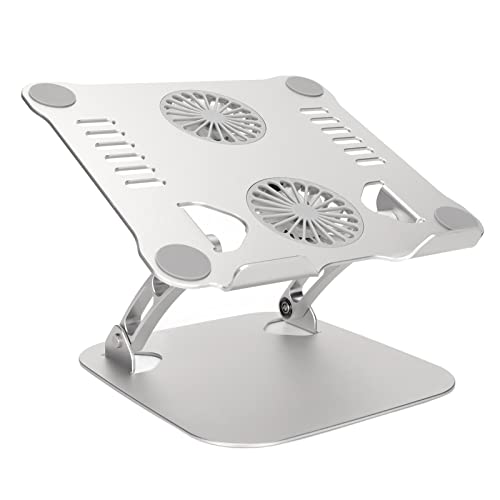 Annadue - حامل لاب توب محمول للمكتب، حامل لاب توب مع مروحتين، حامل تبريد لاب توب قابل للطي والتعديل لأجهزة اللاب توب مقاس 25 إلى 44 سم، مصنوع من خليط معدني من الألومنيوم من انادومي (فضي)