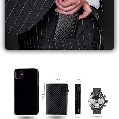 - ︎【التصميم】على عكس محافظ بطاقات الائتمان الأخرى، تتميز محفظة حامل البطاقات للرجال بوظيفة منبثقة مريحة حيث تنزلق جميع البطاقات، مما يجعل من السهل العثور على البطاقة التي تبحث عنها. لن تسقط البطاقة وهي المحفظة الذكية المثالية للرجال. لا مشكلة في وضعها في الجيب الأمامي/الخلفي. لا يتشقق أو ينحني.