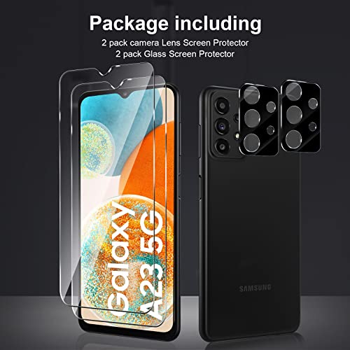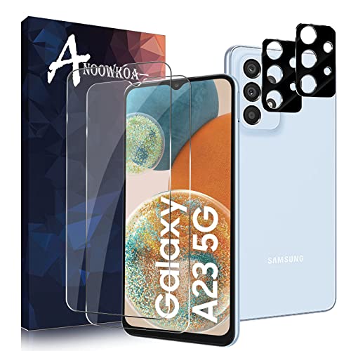 Anoowkoa - واقي شاشة وواقي لعدسة الكاميرا متوافقة مع موبايل سامسونج جالاكسي A23 من انوكوا [عبوة 2+2 قطعة] مصنوع الزجاج المقوى غشاء مضاد لبصمات الاصابع شفاف