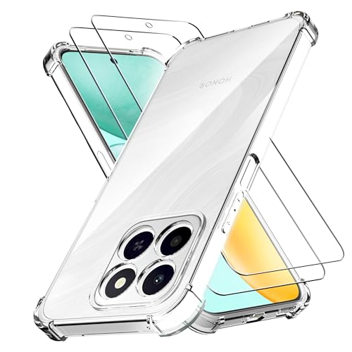 Anoowkoa - غطاء حماية من انوكوا لهاتف هونر X6c + قطعتين من الزجاج المقسى، جراب حماية من السيليكون الشفاف فائق النحافة من البولي يوريثين الحراري الناعم المقاوم للصدمات مع امتصاص الصدمات