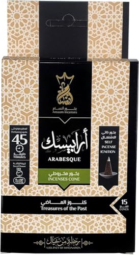 Generic - بخور أنسام عالي الجودة - إشتعال يدوم لمدة 45 دقيقة - تحتوي العبوة علي 15 قمع هرمي (ارابيسك)