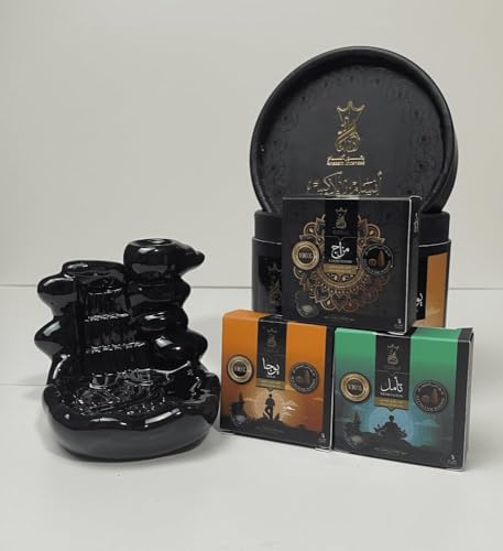 Generic - بخور أنسام ريلاكس | مجموعة ريلاكس مكونة من 3 عبوات صغيرة بروائح مختلفة (يوجا - تأمل - مزاج) | تأتي مع هدية مبخرة ذكية سيراميكية على شكل شلال