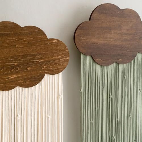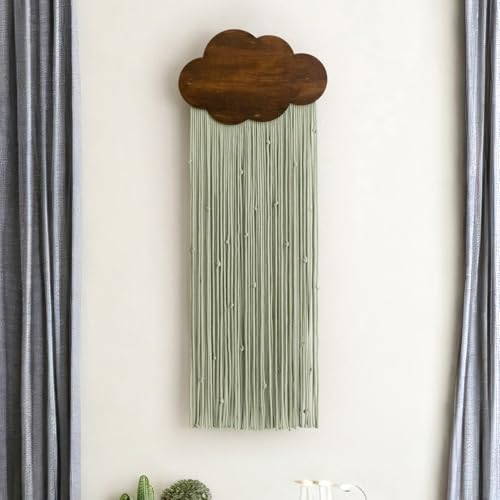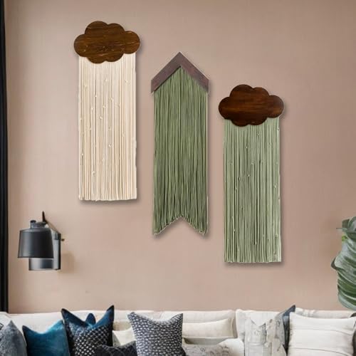 Ansley&HosHo - نسيج مكرمية معلق على الحائط من انسلي اند هوسو، نسيج منسوج بنمط بوهيمي، ديكور حائط عصري بشراشيب، بساط حائط مصنوع يدويا لغرفة النوم وغرفة المعيشة والمنزل والشقة بنمط بوهيمي (سحابة خضراء)