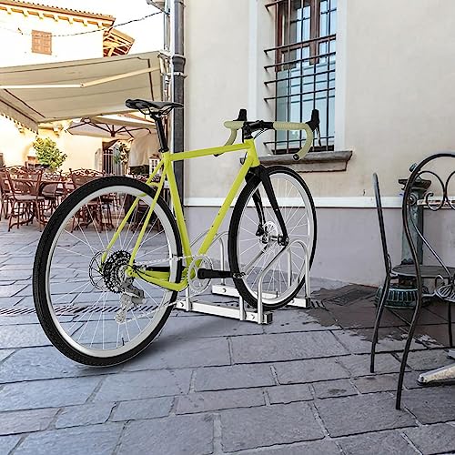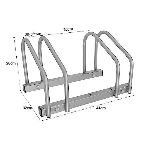 Ansobea - حامل دراجة لدراجتين بعرض إطار من 35 إلى 55 ملم وحامل أرضي للدراجة سهل التجميع من الصلب المجلفن من انسوبيا، فضي، مقاس 41 × 32 × 26 سم