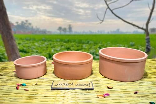 Egypt Antiques - طقم طاجن من الفخر الصحة الطبيعي لون الأصلي مكون من 3 قطع 3 مقاسات مختلفة صناعة مصر يدوي 100% من انتا