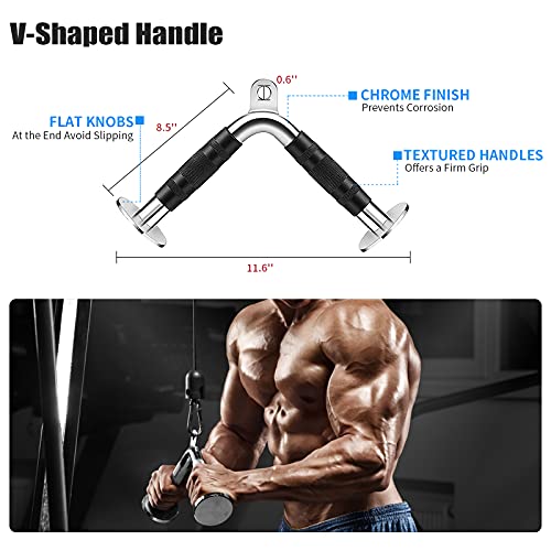 - 💪【قضيب على شكل حرف V ومقبض على شكل حرف V مع دوران】- مصنوع من الستيل الصلب عالي الجودة مع لمسة نهائية من الكروم المصقول. فتحة 0.6 انش يمكن أن تناسب بسهولة جميع أنظمة الكابلات. مقبض مطلي بالمطاط المحكم، يوفر قبضة مريحة وآمنة أثناء التمرين، ويوفر قوة متوازنة لكلا الذراعين عند ربطه بأي جهاز صالة ألعاب رياضية.