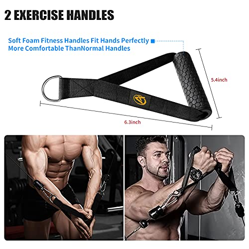 - 💪【مقابض التمرين】- هذا الزوج من المقابض الإسفنجية مصنوع من مواد عالية الجودة. تم تصنيع هذه المقابض لتكون قوية ومتينة للغاية. مجهزة بمقابض مبطنة بالفوم السميك، وقلب قوي صناعي، وحلقة على شكل حرف D من الستانلس ستيل، وحزام من النايلون المنسوج السميك لتوفير الراحة والأمان والمرونة في الاستخدام والإمساك.