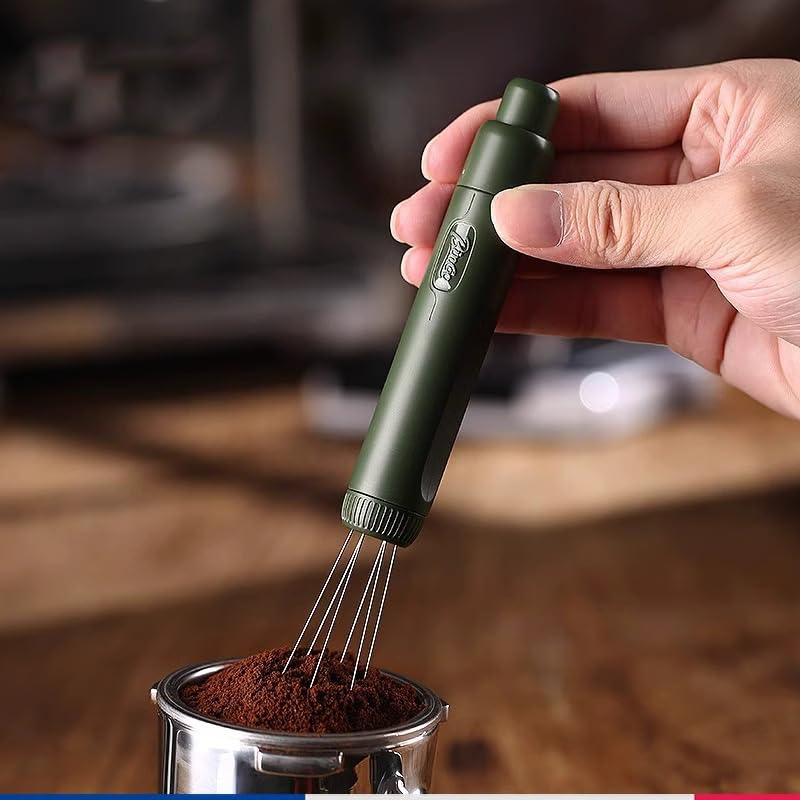 fashion mania - اداة تقليب القهوة المطحونة مضادة للتكتل، صغيرة الحجم ومحمولة مع قاعدة تخزين، اداة تقليب يدوية لتوزيع القهوة للمنزل والمطبخ والمقهى (اخضر)