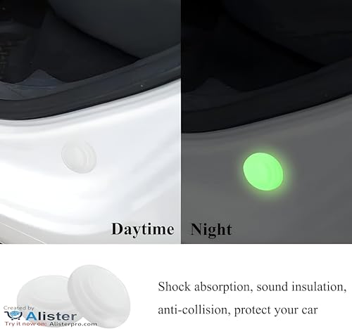 Generic - شرائط حماية حواف الأبواب مقاومة للصدمات مصنوعة من السيليكون الأبيض بخاصية التوهج في الظلام لتوفير امتصاص صدمات وحماية متينة لأبواب السيارة، سماكة 27 ملم، 4 قطع