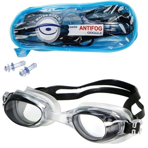 Generic - نظارات سباحة مضادة للضباب مع سدادات أذن، لون أسود