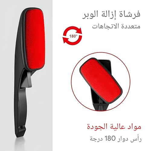 - تتميز رأس الفرشاة الدوارة بتصميم متعدد الاتجاهات يعمل بضغطة زر بسيطة على المقبض المريح، مما يسمح بإزالة شعر الحيوانات الأليفة والوبر والغبار والحطام من الأقمشة بتمريرة واحدة فقط.