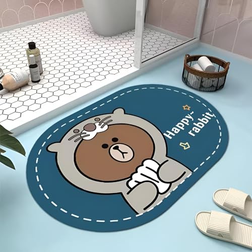 Generic - سجادة مضادة للانزلاق - سجادة متينة متعددة الالوان للحمام وغرفة النوم مصنوعة من المطاط والمايكروفايبر بشكل بيضاوي للوقوف المريح، مصممة لامتصاص الصدمات ومنع الانزلاق في المناطق الرطبة