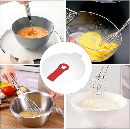- تصميم عالمي قابل للتعديل: يتميز بـ 5 حلقات سيليكون مرنة تناسب أي حجم وعاء تقريبًا، بدءًا من أوعية الخلط الصغيرة إلى أحواض الخبز الكبيرة. مثالي للخلاطات اليدوية والمضارب الكهربائية وأدوات الخفق من جميع الأنواع.