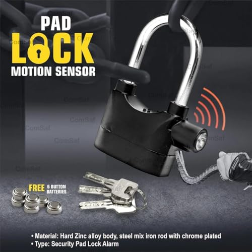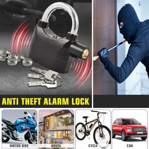 ComSaf - قفل مفتاح انذار معدني مضاد للسرقة بمستشعر حركة للمنزل/المكتب/الدراجات - قفل انذار امان مقاوم للماء للباب لسلامة المنزل - قفل 110 ديسيبل للاستخدام العالمي