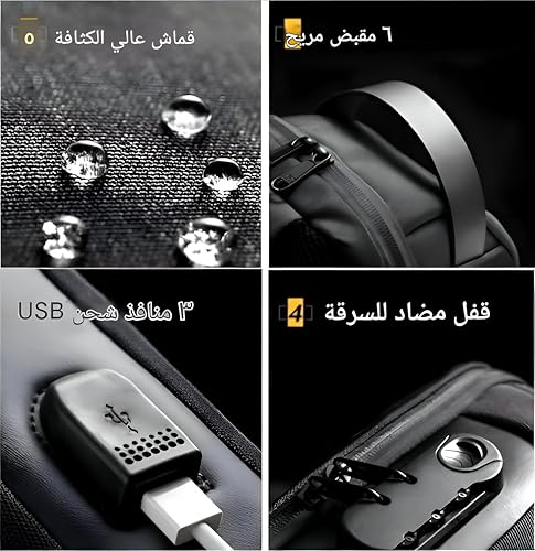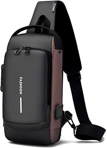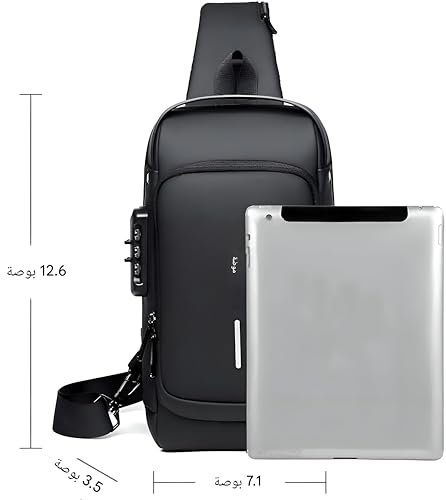 Generic - شنطة كتف مضادة للسرقة - تصميم صغير وخفيف الوزن مع حجب تقنية تحديد الهوية بموجات الراديو ومنفذ USB وحزام قابل للتعديل للسفر الحضري والمشي لمسافات طويلة والنزهات الليلية