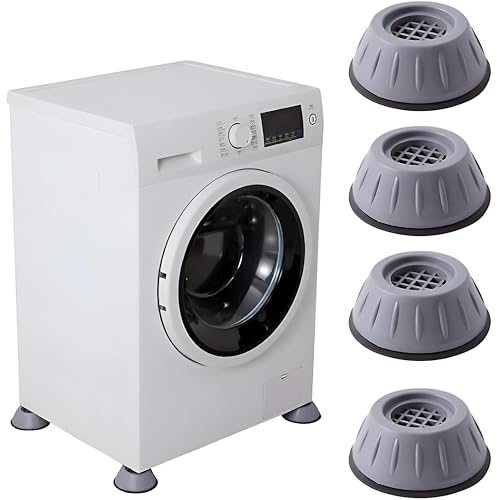 Generic - وسادات مضادة للاهتزاز - أرجل غسالة ممتصة للصدمات مع قاعدة شفط للغسالة والمجفف والثلاجة، تقلل الضوضاء وتثبت الأجهزة الثقيلة، رمادي، 4 قطع