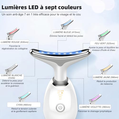 - 【إضاءة LED بـ 7 ألوان】يحتوي جهاز تدليك الوجه على 3 أوضاع تدليك للتبديل بالإضافة إلى جهاز تدليك الوجه يمكنه أيضًا إنتاج 7 ألوان إضاءة LED، مع تدليك الوجه والرقبة: ضوء أحمر مضاد للشيخوخة، ضوء أزرق لتخفيف الالتهاب، ضوء أخضر للقضاء على التجاعيد، ضوء أرجواني لإزالة السموم، ضوء أصفر باهت، ضوء أزرق فاتح لتخفيف توتر البشرة، ضوء أبيض لاسترخاء البشرة
