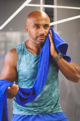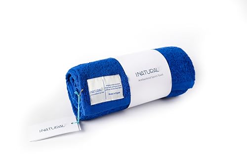 I NATURAL - منشفة رياضية من آي ناتشورال مصنوعة من القطن 100%، لون أزرق رويال، مقاس 50 × 120 سم، قطعة واحدة، مضادة للبكتيريا والروائح بتقنية البوليجين