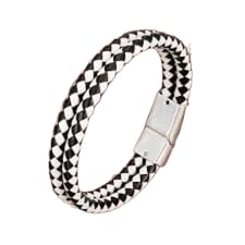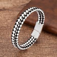 Generic - سوار جلدي للرجال متعدد الطبقات على شكا ضفيرة بقفل مغناطيسي بألوان متعددة من أنتيكا براند (سوار ابيض x اسود قفل فضي)