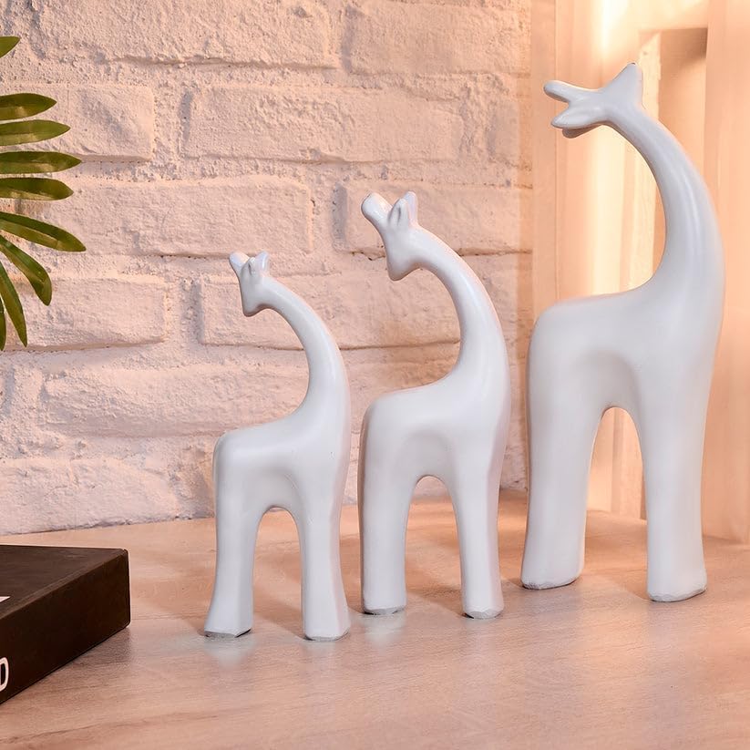 Generic - انتيكات مجموعة من 3 قطع علي شكل زرافة، لون أبيض ديكور لغرفة النوم و المكتب و ....