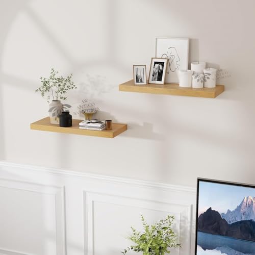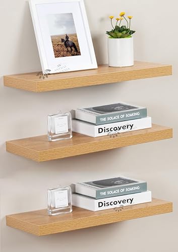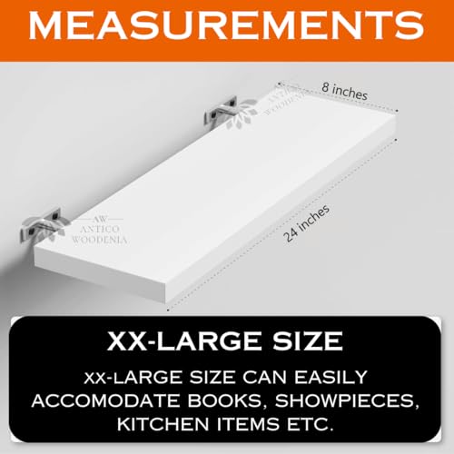 ANTICO WOODENIA - رف حائط خشبي عائم من انتيكو وودينيا® حامل يثبت على الحائط دعامة لديكور المنزل والمكتب خزائن كبيرة مثبتة مجموعة 3 قطع خشب البلوط البافاري x L 24×8 انش