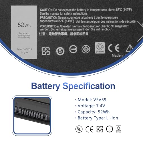 ANTIEE - بطارية لاب توب بديلة 7.4 فولت 52WH VFV59 لجهاز ديل لاتيتيود E7240 E7250 سلسلة نوت بوك E7250 GVD76 WD52H F3G33 HJ8KP 451-BBFX 451-BBFW
