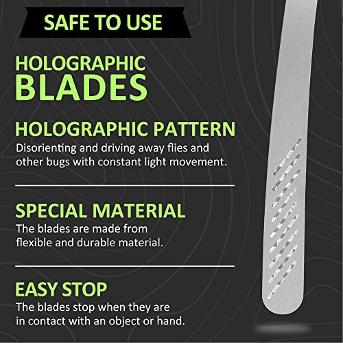- تقنية فريدة من نوعها - تجنبك الحشرات والذباب وتحميها بعيدًا عن الأجسام المنكسرة للضوء، مزيج مروحة الذباب الخاصة بنا من نمط ثلاثي الأبعاد خاص على الشفرات الناعمة وحركتها المستمرة يخلق بيئة مربكة ستبقى الذباب والحشرات بعيدًا عنها. بالإضافة إلى ذلك، فإن مروحة الذباب لا تصدر أي ضوضاء والشفرات مصنوعة من مواد مرنة ومتينة حتى لا تقلق بشأن إصابة يديك.