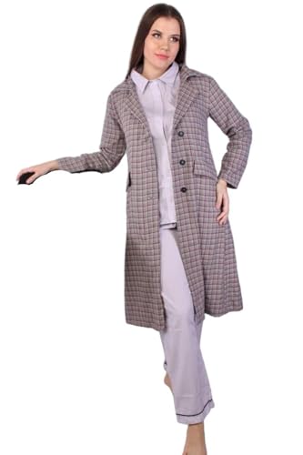 Antika Cotton - معطف قطن تحت الركبة بتصميم مربعات من انتيكا باللون البني والاحمر