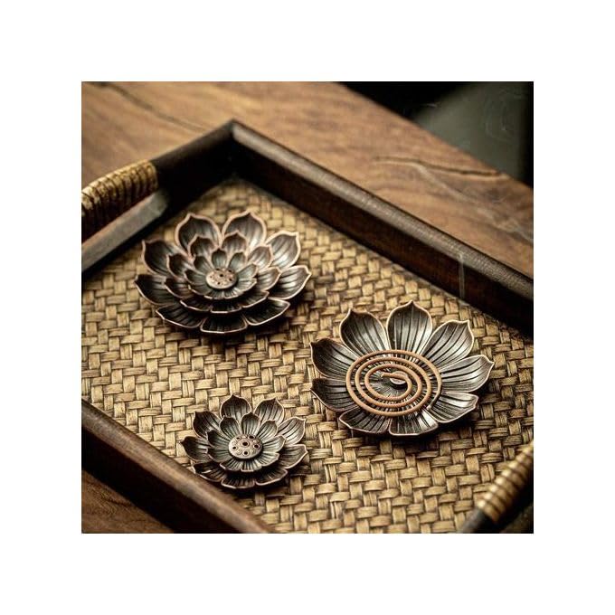 - تصميم نحاسي أنيق: مصنوع من النحاس عالي الجودة بتصميم زهرة ذهبية فاخرة، مما يجعله مبخرة عملية وقطعة فنية زخرفية.