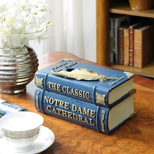 - This exquisite tissue box cover is meticulously handmade and hand-painted to resemble a stack of three antique books, offering a unique classical retro aesthetic that instantly elevates any interior space with its timeless charm and sophisticated vintage appeal for discerning homeowners seeking distinctive decor elements.