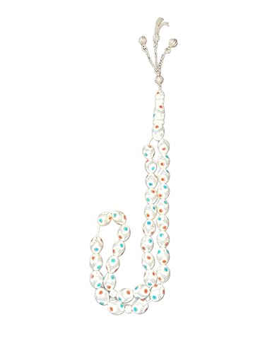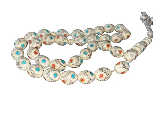 Generic - سبحة عاجية عتيقة مرصعة بشراشيب ثلاثية من الفضة عيار 925، تركواز ازرق طبيعي ومرجان تونسي، للنساء