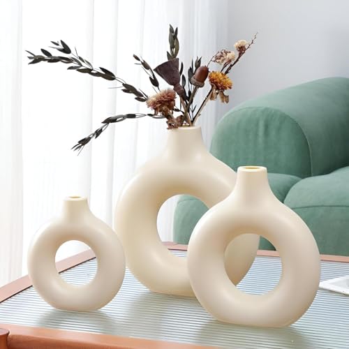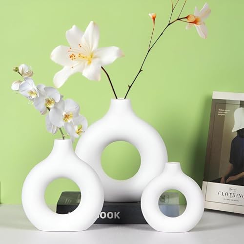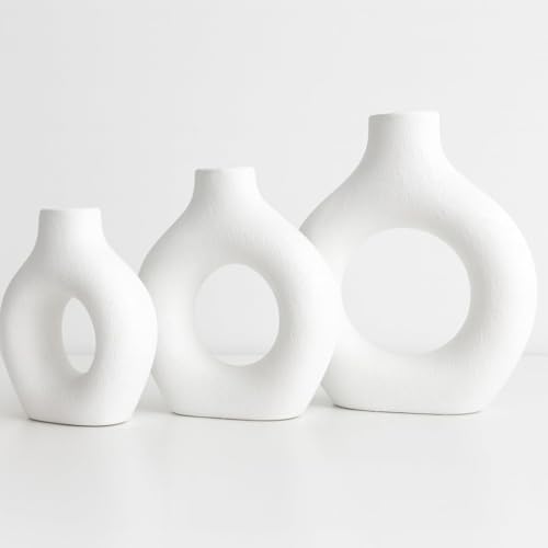 Generic - تحف وديكور (مجموعة فازات من 3 قطع بتصميم دوناتس لتنسيقات الزهور لون ابيض)