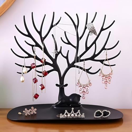 Generic - منظم مجوهرات بتصميم قرن الغزال - منظم سلسلة وحلق ملتوي، حامل بتصميم شجرة أنيق للأكسسوارات، لون أسود، مصنوع من هيكل بلاستيكي قوي (قطعة واحدة)