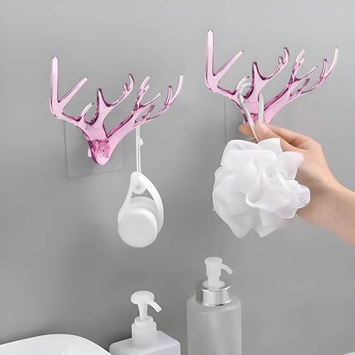 Generic - خطاف حائط مزدوج الرأس على شكل قرن الغزال لتعليق المعاطف حامل معاطف لاصق شفاف للحيوانات رف مناشف ورقية أكريليك متين مثالي لتزيين المنزل وتنظيم المساحة 2 الحد الأقصى للوزن الموصى به: 500.0 غرامات