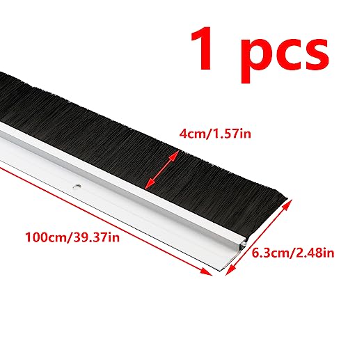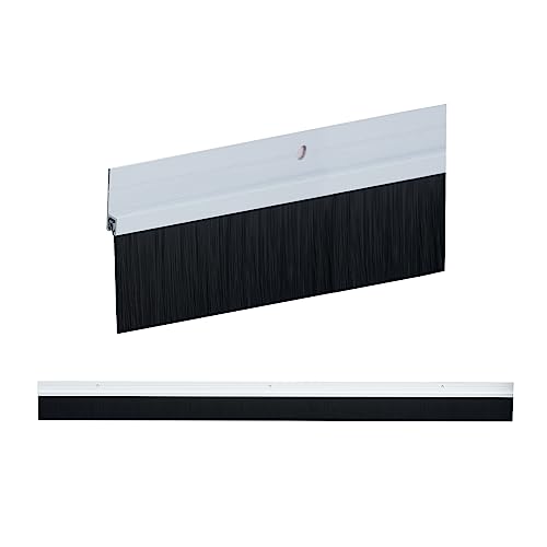 Antrader - ممسحة أسفل الباب من انتريدر، عبوة واحدة من فرشاة الباب مع لوحة ألومنيوم وشعيرات نايلون سوداء، 99×4 سم، أبيض