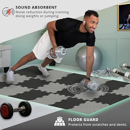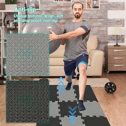 - 【مقاومة للماء وغير قابلة للانزلاق】: سجادة أرضية صالة الألعاب الرياضية مصنوعة من مادة ايفا القوية والمتينة، خفيفة الوزن وقوية في الجودة، سجادة إسفنجية لصالة الألعاب الرياضية مقاومة للماء ويمكن استعادة نظافتها بمسحة لطيفة فقط، مما يوفر وقت التنظيف، كما أن بلاط الأرضيات الإسفنجي المتشابك له سطح قوي يمنع السقوط والانزلاق.