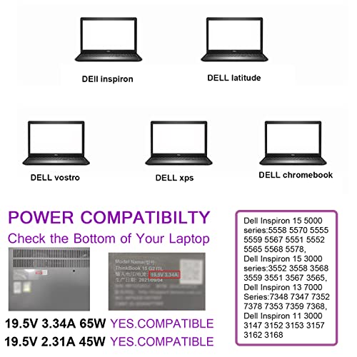 ANTWELON - محول تيار متردد 65 وات و45 من انتويلون لجهاز ديل انسبيرون 11 13 14 15 17 3000 5000 7000 طراز 3147 7347 7353 3551 3552 5555 5558 5559 فوسترو 4