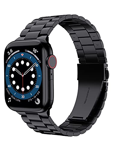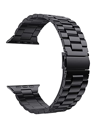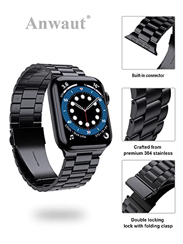 Anwaut - سوار معصم بديل صلب من الستانلس ستيل متوافق مع اساور ساعة ابل 44 ملم 42 لساعة SE سلسلة 6 وسلسلة 5 4 3 2 1 للنساء والرجال mm-42 mm ستانلس أسود