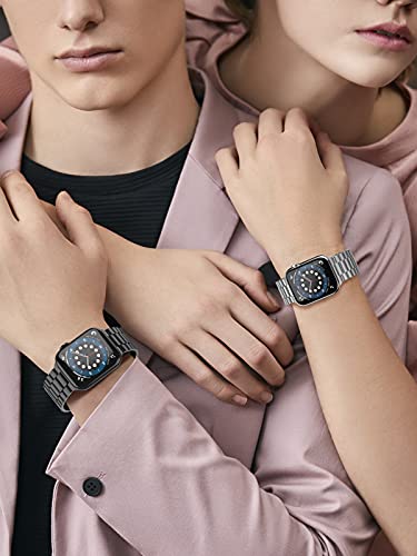 - [الموديلات المتوافقة]: سوار بديل من الستانلس ستيل لساعة ابل سلسلة 6/SE/5/4/3/2/1 ومتوافق مع سوار اي ووتش مقاس 42 ملم و44 ملم ويناسب مقاسات المعصم من 5.5 بوصة إلى 8.07 بوصة، يرجى الاتصال بنا لمتطلبات طول خاصة.