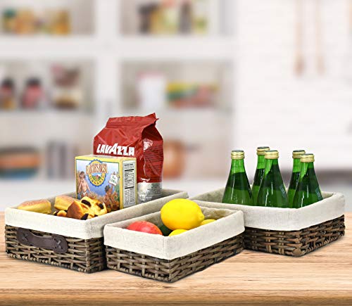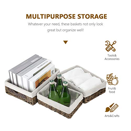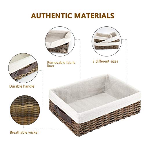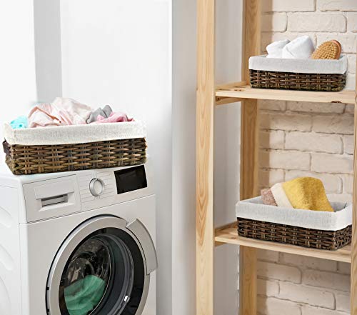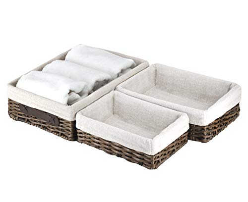Anwelynd - سلة تخزين مزخرفة من الخوص ولها بطانة، 3 مجموعات سلال تخزين كبيرة مصنوعة يدويا للتنظيم، سلال متداخلة منسوجة لتخزين ورق المرحاض، سلة ديكور للخزانة والحمام