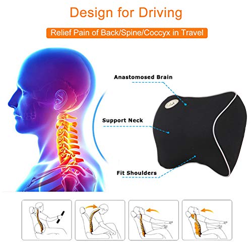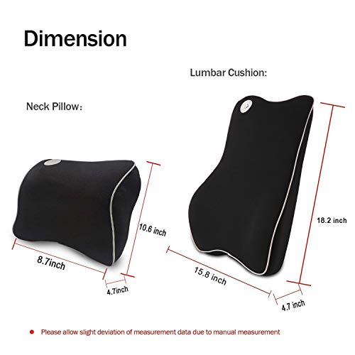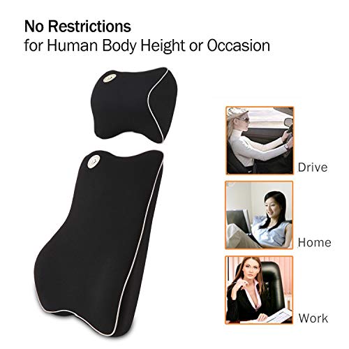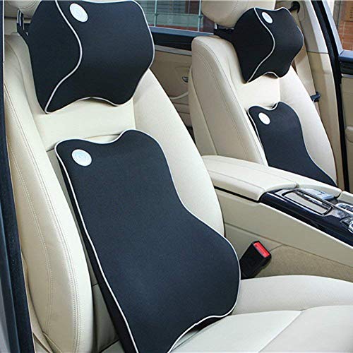 Anyshock - مجموعة وسادة دعم القطنية ووسادة مسند الرأس والرقبة، تصميم مريح من الفوم ميموري لتقويم العظام لمقعد السيارة وكرسي المكتب والكمبيوتر والكرسي المتحرك لتخفيف آلام الظهر من انيشوك، أسود