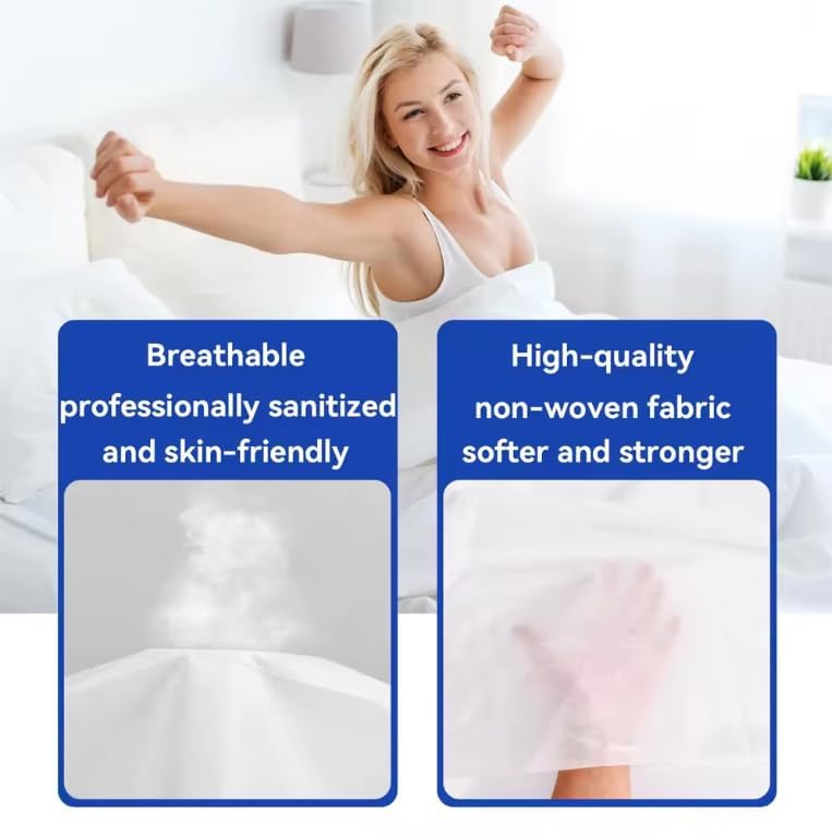 - أفضل مجموعة للسفر - المقاس الأكبر يناسب معظم أغطية الأسرّة للفنادق. ملاءات السفر التي تستخدم لمرة واحدة مصنوعة من قماش غير منسوج عالي الجودة، جيدة التهوية ومريحة في الاستخدام. ملاءات سرير للاستعمال مرة واحدة خفيفة الوزن ومقاومة للتمزق وغير ضارة ومضادة للكهرباء الساكنة.