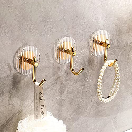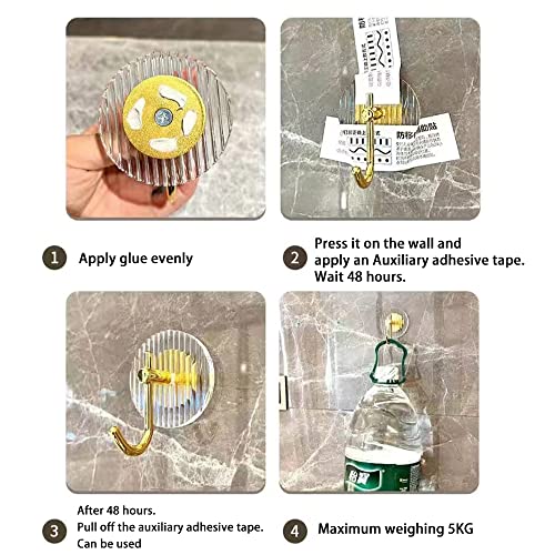 Anyuecoco - خطافات لاصقة من انيويكو تلصق بغراء بدون مسامير لوح سفلي الاكريليك بخطاف متعدد الاستخدامات بلون ذهبي حمام 4 قطع معدن أكريليك الحد الأقصى للوزن الموصى به: 3.5 رطل منانيوكوكو