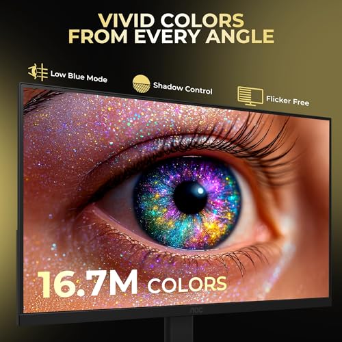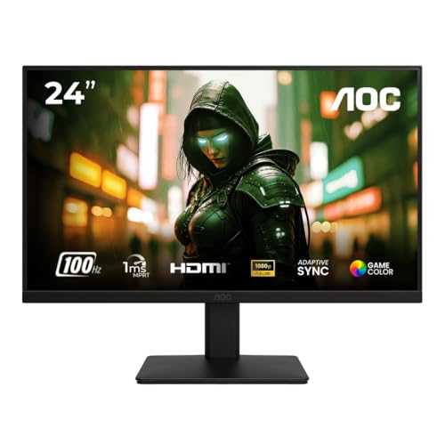 AOC - شاشة الألعاب AOC 23.8 بوصة، بتصميم FHD يبلغ 1920 × 1080 بكسل، مع معدل تحديث 100 هرتز وزمن استجابة سريع يصل إلى 1 مللي ثانية، تتميز بتقنية اي بي اس، أسود، 24B20JH2/56