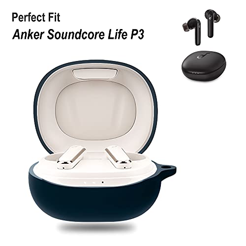 Aocar - جراب سيليكون متوافق مع انكر ساوند كور لايف 3، جراب محمول مقاوم للصدمات والخدش مع حلقة تسلق من اوكار (ازرق كحلي)، لانكر ساوند كور لايف بي 3
