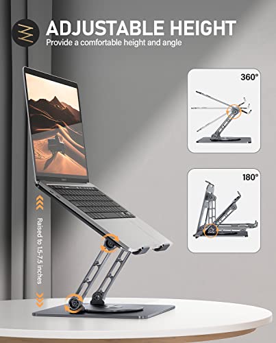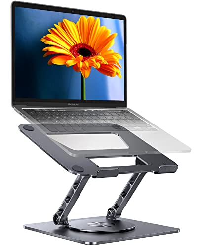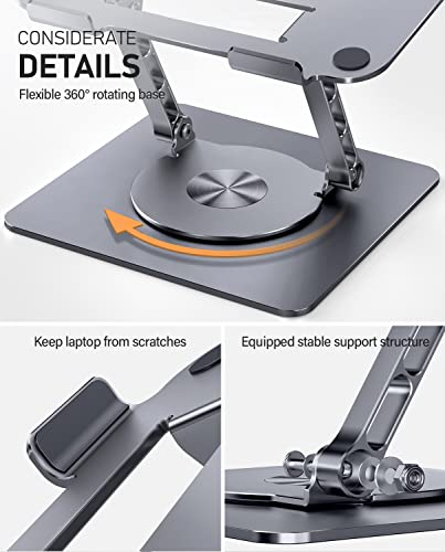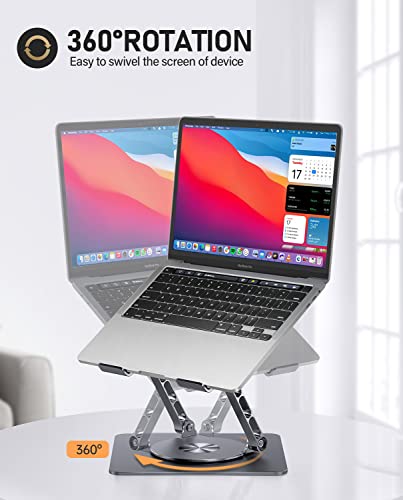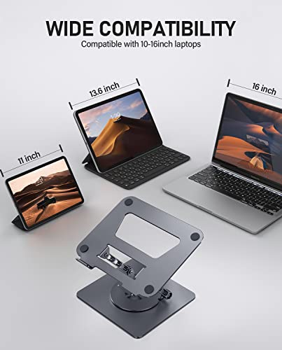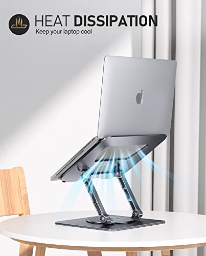 AOEVI - حامل لاب توب للمكتب، حامل لاب توب قابل للتعديل مع قاعدة دوارة 360 درجة، حامل لاب توب قابل للطي متوافق مع ماك بوك برو/اير نوت بوك حتى 16 بوصة، رمادي، الألومنيوم
