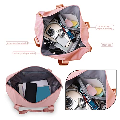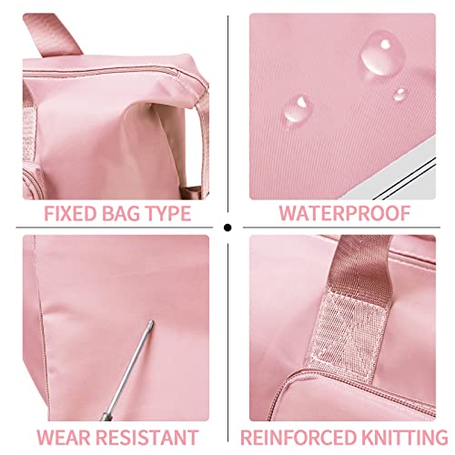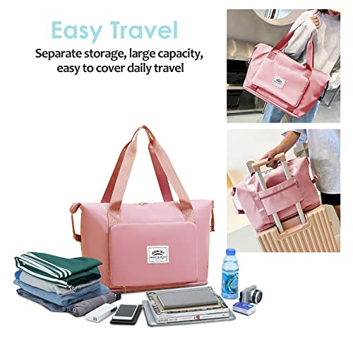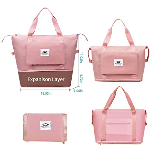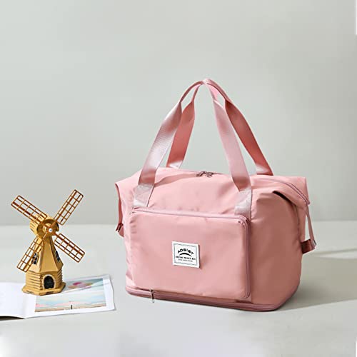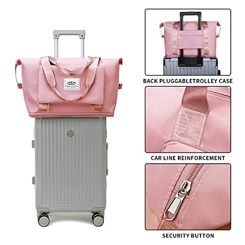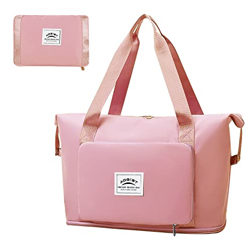 Aogist - شنطة يد كبيرة الحجم من القماش الخشن للسفر مع جيب لفصل الأغراض الجافة والرطبة، شنطة كتف مقاومة للماء لعطلة نهاية الأسبوع للنساء والرجال، شنطة قابلة للطي والتوسيع وخفيفة الوزن وسهلة الحمل, زهري فاتح