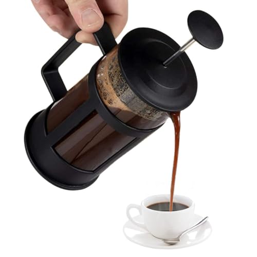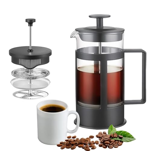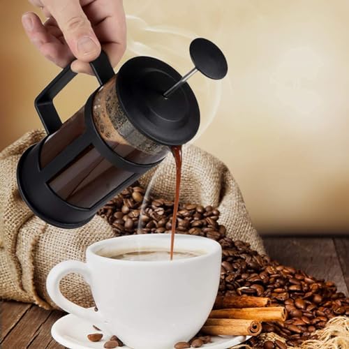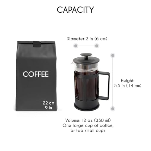 AOHRYME - ماكينة تحضير القهوة الفرنسية سعة 350 مل من اوهريمي الاسبريسو والشاي مع فلتر ثلاثي الطبقات مكبس قهوة زجاج البوروسيليكات وفلتر الستانلس ستيل مقاوم للحرارة للتخييم والسفر اسود