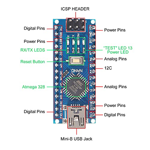 - 【المواصفات】: يمكن تشغيله عبر وصلة USB ميني بي، مصدر طاقة خارجي غير منظم 7-12 فولت (دبوس 30)، أو مصدر طاقة خارجي منظم 5 فولت (دبوس 27). يتم اختيار مصدر الطاقة تلقائيًا إلى أعلى مصدر للجهد.